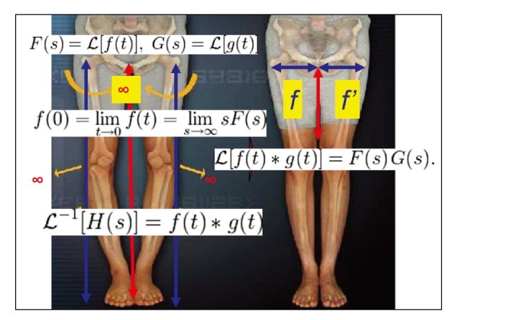 「骨盤補正二段ベルト」の装着によりヒト脊椎の湾曲修正がなされた事実をラプラス変換式へ代入して、「骨盤補正二段ベルト」の装着が超越的な湾曲を修正される事を代数的に計算しました。