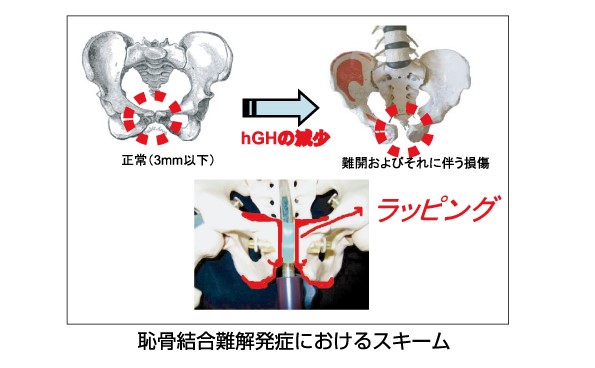 「恥骨結合難解」が起こる理由には様々な定説がありますが、中でも「hGH濃度減少説」が優位となってきた事は注目すべきであり、上述した「hGHの分泌量の増加」を一つの機能として有する「骨盤補正二段ベルト」を開発してきた著者らは、これを見逃す訳にはいきません。