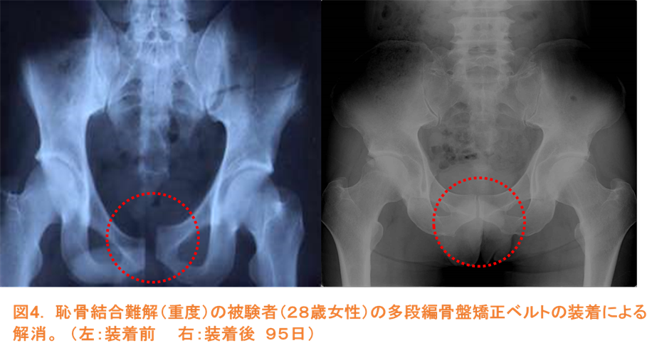 「骨盤補正二段ベルト」の着用で「恥骨結合難解」の改善に有意性が示されました